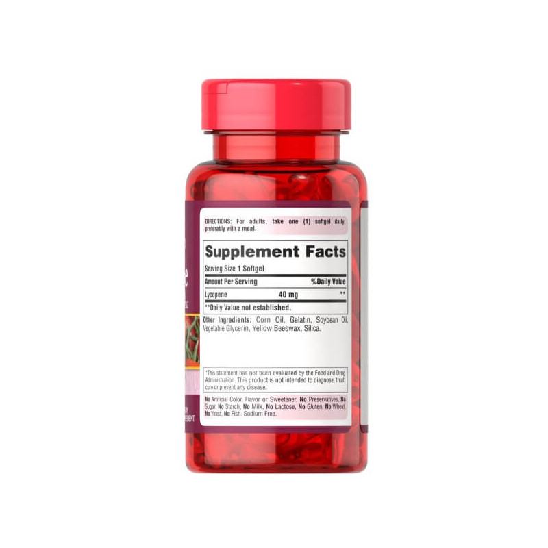 Споживачу Lycopene від Puritan's Pride пропонується в невеликих, зручних у використанні, добре засвоюваних капсулах з желатиновою оболонкою.