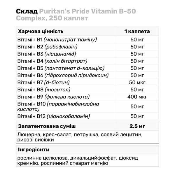 Vitamin B-50 Complex від Puritan's Pride, який ви приймаєте регулярно та відповідно до рекомендацій: