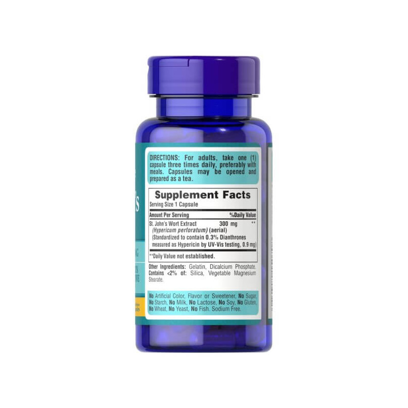 St. John's Wort – біоактивна добавка від популярної компанії зі США Puritan's Pride, високоочищений екстракт звіробою, рослини, до складу якого входять флавоноїди, дубильні речовини, діантрон, ефірна олія та інші інгредієнти.