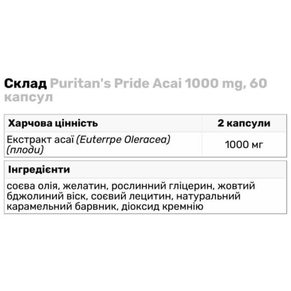 Характеристики    Acai 1000 мг Puritan's Pride (60 капсул)