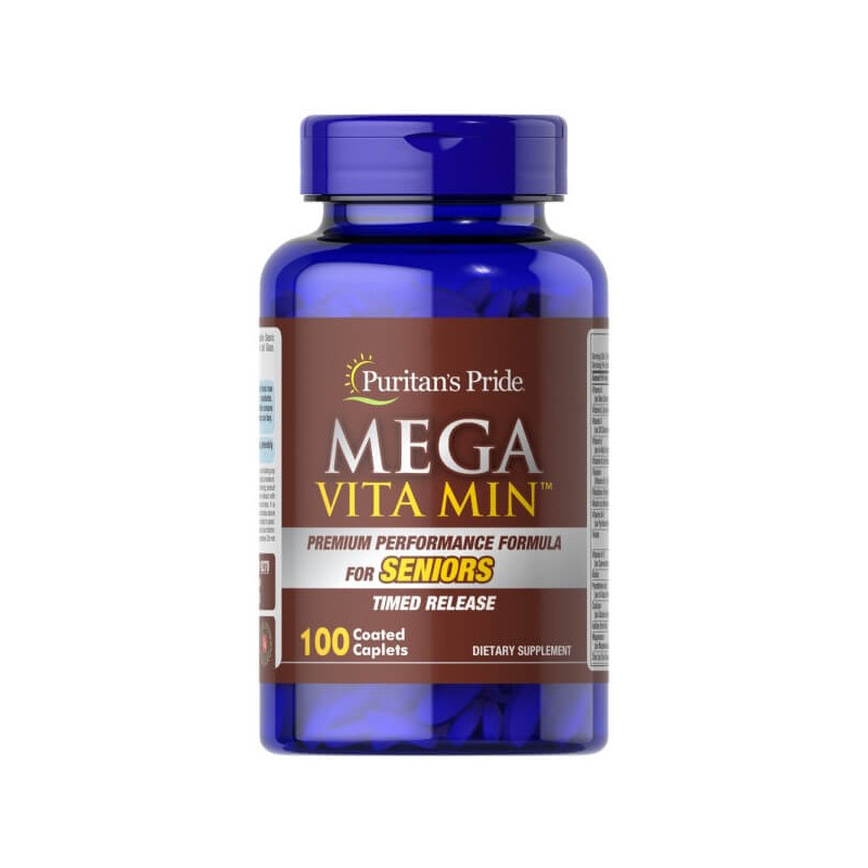 Mega Vita Min for Seniors Timed Release – ідеально збалансований біопродукт від американського бренду Puritan's Pride. До його складу входять вітаміни, мінерали, рослинні екстракти, біофлавоноїди, коензими та інші активні інгредієнти.