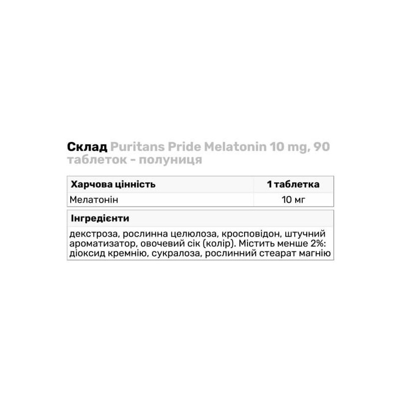 Добавка містить 10 мг мелатоніну в кожній капсулі.