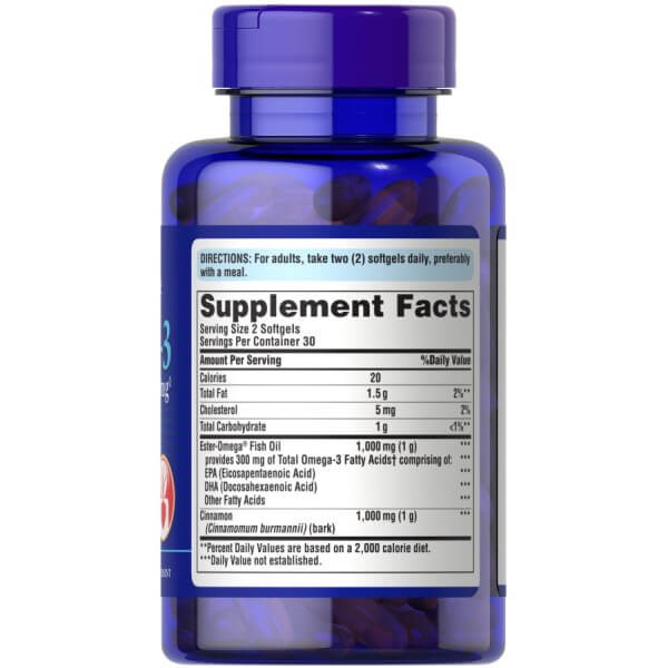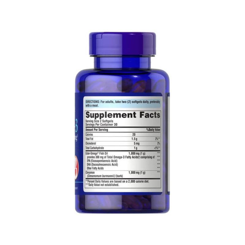 Omega 3 Fish Oil Plus Circulatory Support від легендарної компанії зі США Puritan's Pride – збалансована біодобавка, яку можна використовувати як основне або додаткове джерело поліненасичених жирних кислот Омега 3. Також до його складу входить кора кориці, що підтримує кровоносну систему.