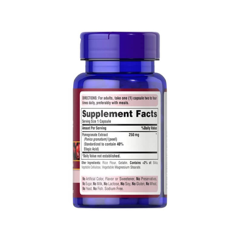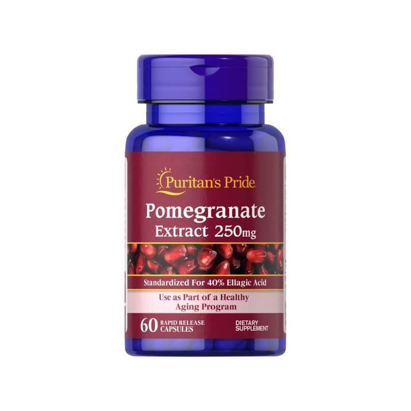 Pomegranate Extract від відомого бренду із США Puritan's Pride – біоактивна добавка, що діє компонентом у складі якої виступає шкірка гранату. Цей продукт широко використовується в різних національних кухнях як спеція, що надає стравам елегантну кислинку. Однак шкірка плодів гранатового дерева має ще й потужний антиоксидантний ефект. А отже, її вживання позитивно позначається на здоров'ї та самопочутті.