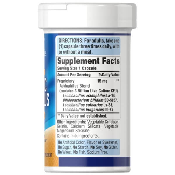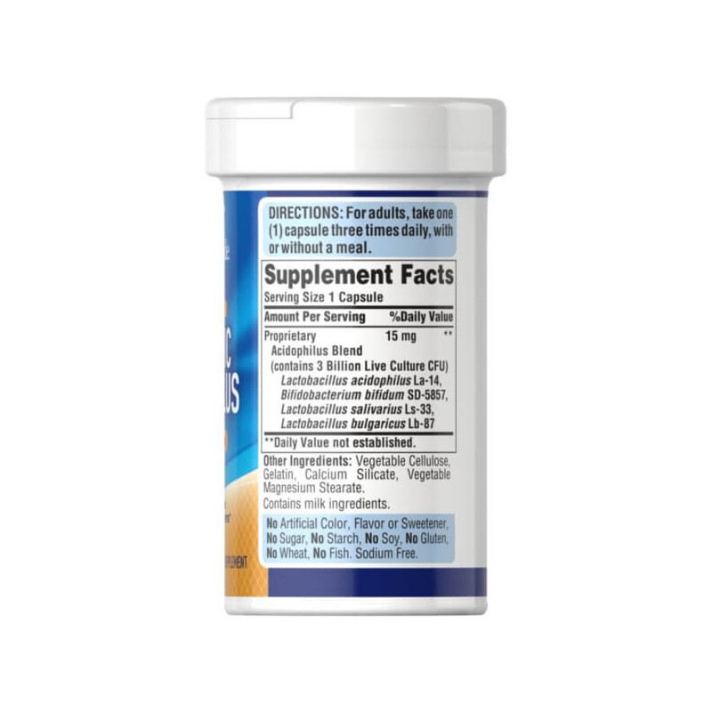 Приймають Probiotic Acidophilus від Puritan's Pride тричі на добу, по одній капсулі за підхід, незалежно від їди, запиваючи чистою негарячою водою.