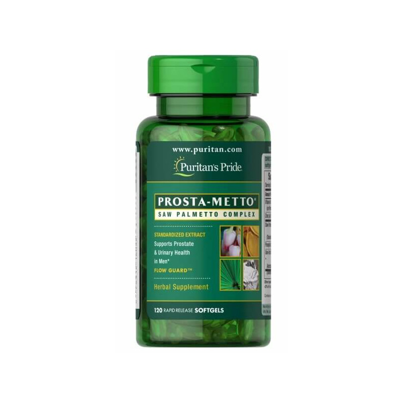 Prosta-Metto від одного з провідних американських брендів Puritan's Pride – комплексна біодобавка для підтримки чоловічого здоров'я, до складу якої входять винятково натуральні інгредієнти. Це екстракт ягід пальми сереноа, відомої також як со-пальметто, екстракт мучниці (ура-урсі, мучниці), олія гарбузового насіння, а також вітамін В6 і цинк.