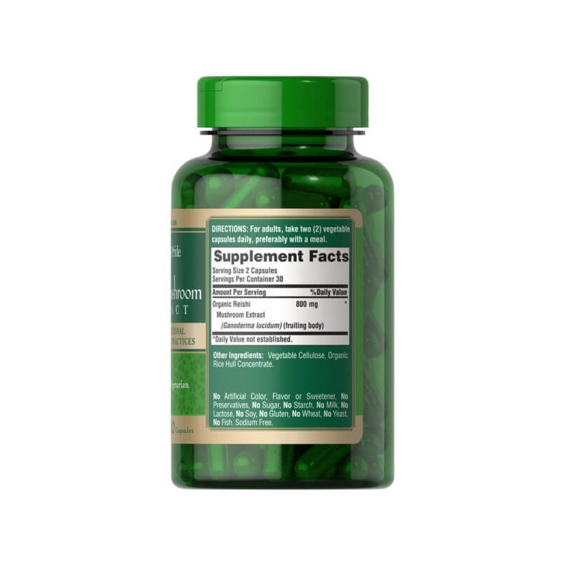Reishi Mushroom Extract від легендарного американського бренду Puritan's Pride – високоочищений натуральний продукт, активним інгредієнтом якого є екстракт гриба рейші. Цей унікальний за своїми властивостями гриб, який вважається потужним адаптогеном, упродовж багатьох століть широко використовується у східній народній медицині. У ньому містяться рослинні стероли, бета-глюкани, полісахариди та інші корисні речовини.