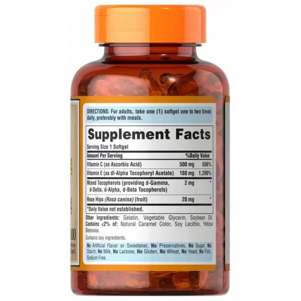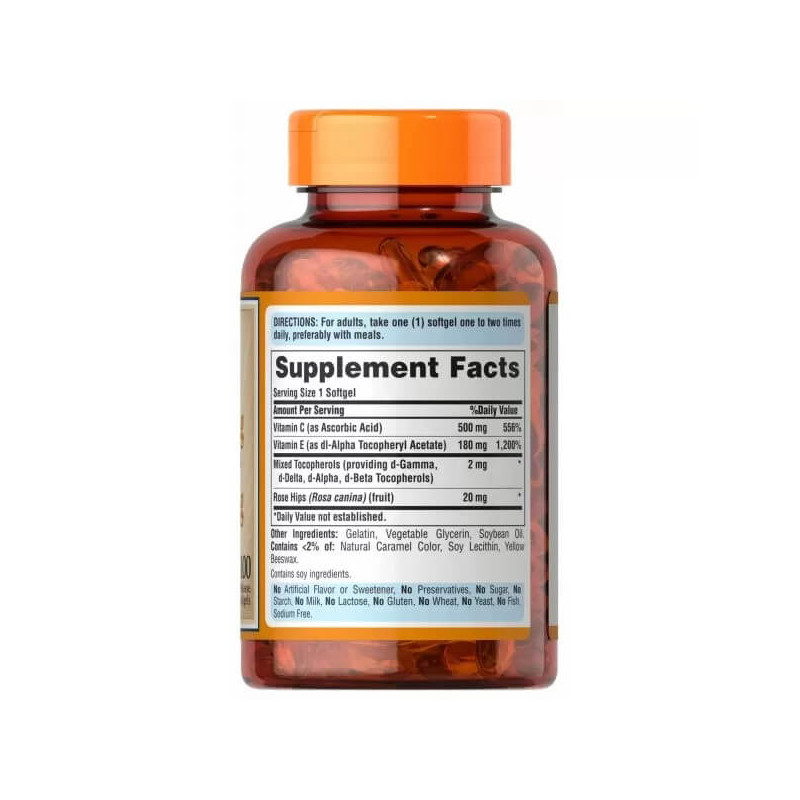 Vitamin C&E with Rose Hips від відомого американського виробника Puritan's Pride – універсальний збалансований комплекс з вітамінами С та Е, а також сумішшю токоферолів та екстрактом шипшини у складі. Продукт виготовлений з натуральної рослинної сировини, наведеної до міжнародних стандартів та забезпеченої офіційними сертифікатами.