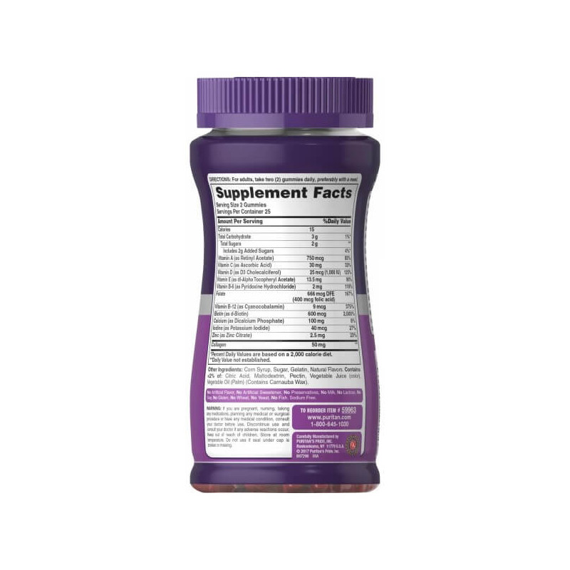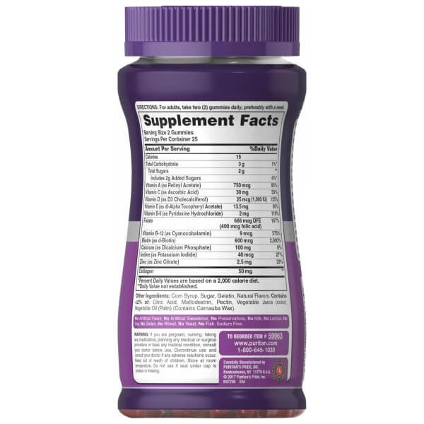 У порції двох жувальних цукерок Womens Multivitamin Gummies plus Collagen від компанії Puritans Pride міститься: