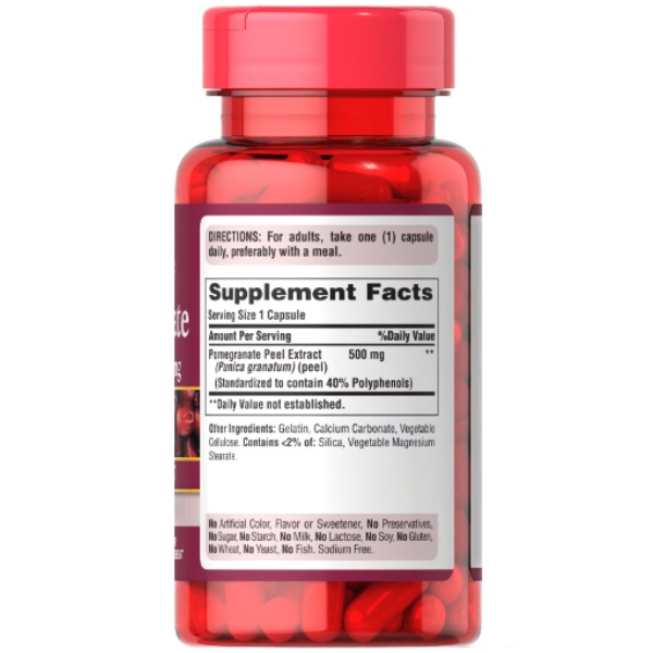 Pomegranate Extract від відомого бренду із США Puritan's Pride – біоактивна добавка, що діє компонентом у складі якої виступає шкірка гранату. Цей продукт широко використовується в різних національних кухнях як спеція, що надає стравам елегантну кислинку. Однак шкірка плодів гранатового дерева має ще й потужний антиоксидантний ефект. А отже, її вживання позитивно позначається на здоров'ї та самопочутті.