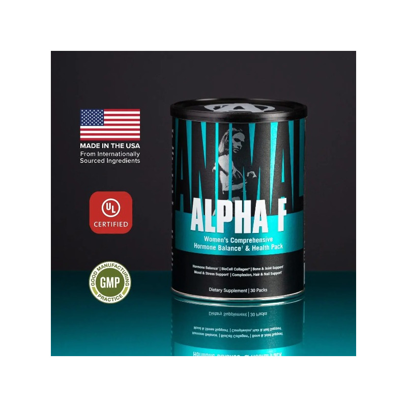 Зі зручним форматом у вигляді пакетів та інноваційною формулою Alpha F надає вам можливість узяти контроль над своїм здоров'ям і фізичною формою, підтримуючи природний баланс гормонів і зміцнюючи ваш організм. Незалежно від того, чи є ви досвідченою спортсменкою, чи тільки починаєте свій шлях до турботи про себе, Alpha F Universal Nutrition створений для того, щоб підкреслити вашу силу, енергію та жіночу гармонію.