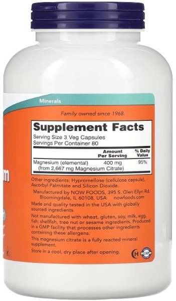 Основні характеристики NOW Foods Magnesium Citrate: