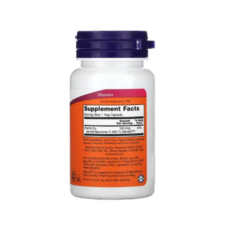 MK-7 Vitamin K-2 100 від виробника із США Now Foods – натуральна біодобавка, джерело жиророзчинного вітаміну К2 у формі МК-7. Він має високу біологічну активність, а отже, чудово засвоюється організмом, приносячи йому максимум можливої користі.
