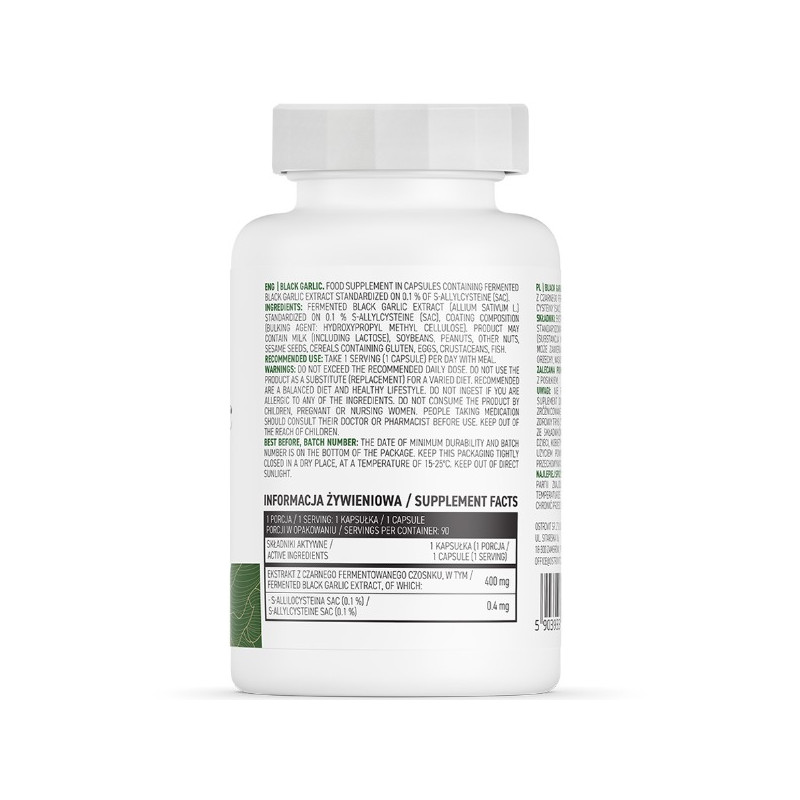 Кожна упаковка містить 90 капсул, забезпечуючи достатню кількість продукту для тривалого використання. Це робить Black garlic OstroVit зручним та економічним вибором для тих, хто прагне впровадити цей унікальний продукт в свій раціон.