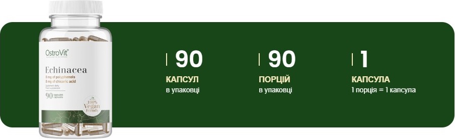 Зручність використання: Echinacea Vege OstroVit доступний у формі капсул, що робить його зручним у використанні. Продукт легко дозується та приймається в будь-який час дня, що дозволяє інтегрувати його в зайнятий графік та спосіб життя.