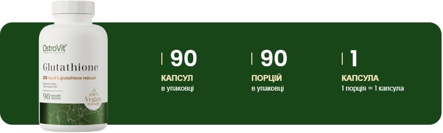 Glutathione VEGE OstroVit - це інноваційний продукт, розроблений для підтримки здоров'я та зміцнення імунітету. Він містить відновлений L-глутатіон, один із найпотужніших антиоксидантів, що природно присутній в організмі людини. Цей продукт пропонує надійну формулу, що сприяє підтримці оптимального рівня глутатіону в організмі, що може мати позитивний вплив на загальне здоров'я та відновлювальні процеси.