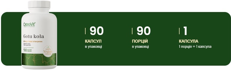 Gotu Kola VEGE OstroVit пропонує зручну форму прийому - капсули, які легко ковтати і зручно дозувати. Це робить його ідеальним вибором для зайнятих людей, які цінують свій час і хочуть отримати максимальну користь для свого здоров'я.
