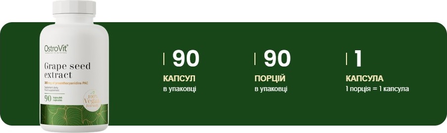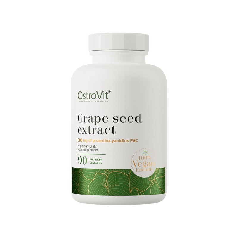 Grape Seed VEGE OstroVit - це натуральний додаток до раціону, розроблений для підтримки загального здоров'я та благополуччя організму. Цей продукт містить високоякісні екстракти з насіння винограду, які відомі своїми корисними властивостями та багаті антиоксидантами.