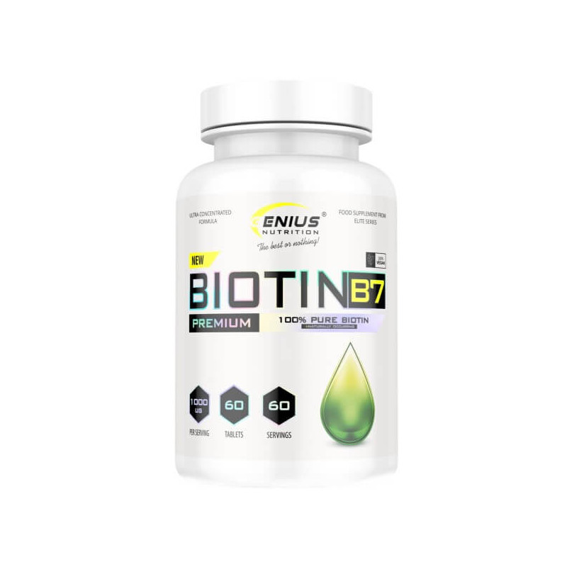Biotin B7 від легендарного виробника зі Швеції Genius Nutrition – натуральна монодобавка, активною речовиною у складі якої є вітамін В7, представлений в очищеному адаптованому вигляді та оптимальній концентрації. Вітамін В7, більш відомий як біотин, нерідко називають вітаміном краси – настільки ефективним є його доведений позитивний вплив на зовнішність. Сьогодні виробник пропонує його у формі невеликих таблеток, комфортних та безпечних у вживанні, що не викликають неприємних побічних реакцій, звикання або гіпервітамінозу.