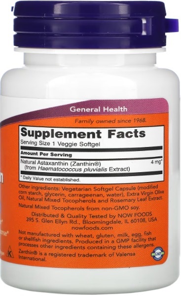 Astaxanthin NOW Foods - це природний продукт, який допомагає підтримувати здоров'я та захищати організм від впливу навколишнього середовища. Завдяки своїм численним корисним властивостям він може стати невід'ємним помічником у вашому прагненні до здорового та активного способу життя. Піклуйтеся про своє здоров'я з Astaxanthin NOW Foods вже сьогодні!