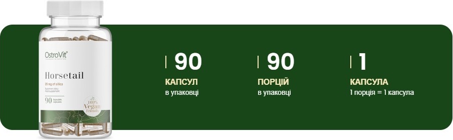 Веганський склад: Horsetail Vegan OstroVit виготовляється з веганських інгредієнтів, що робить його підходящим для всіх, хто дотримується веганського способу життя або просто вибирає рослинні добавки.
