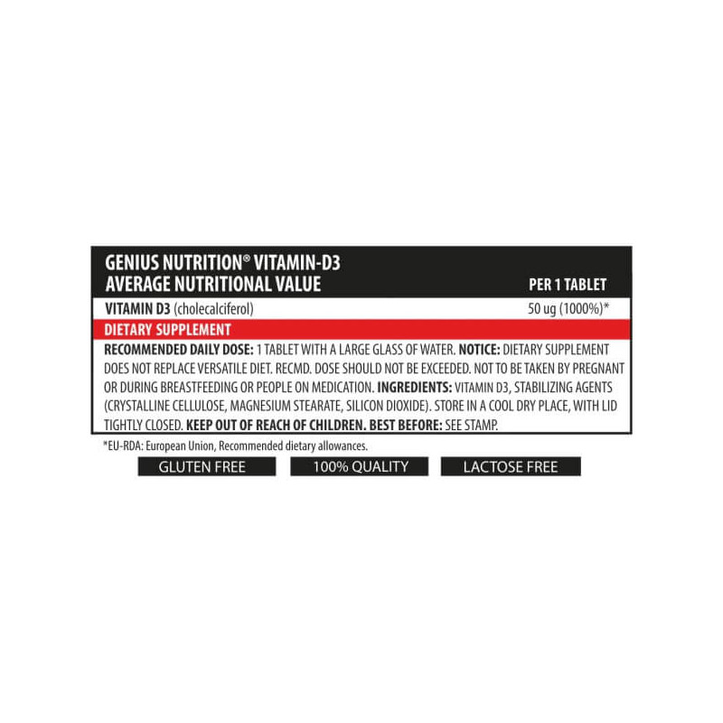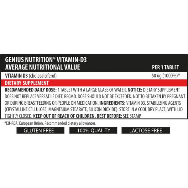 В одній таблетці Vitamin D3 від Genius Nutrition міститься: