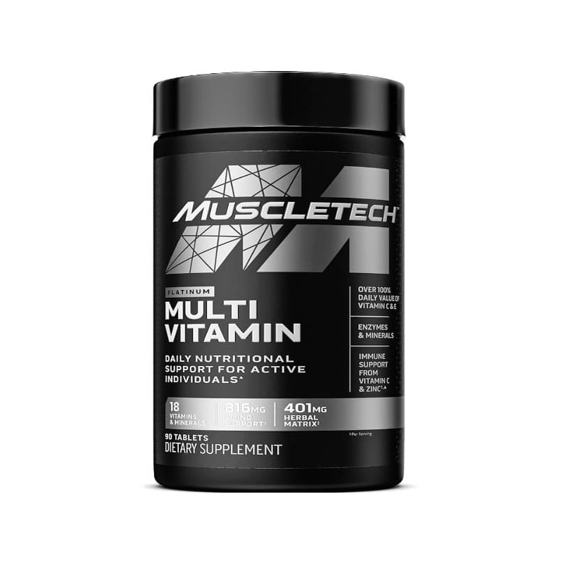 Muscletech Platinum Multi Vitamin - це не просто вітамінний комплекс; він представляє собою комплексний засіб для загального здоров'я та благополуччя. Його унікальна формула, яка містить вітаміни, мінерали, амінокислоти, рослинні екстракти та ферменти, розроблена для підтримки здоров'я вашого організму в цілому.