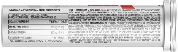 Регулятор кислотності: лимонна кислота; гідрокарбонат калію (калій); карбонат магнію (магній); регулятор кислотності: натрію гідрокарбонат; наповнювач: сорбіт; смак грейпфрута; стабілізатор: поліетиленгліколь; підсолоджувачі: цикламат натрію, ацесульфам К; сушеного концентрату червоного буряка; колір: рибофлавін; піридоксину гідрохлорид (вітамін В6); колір: бета-каротин.