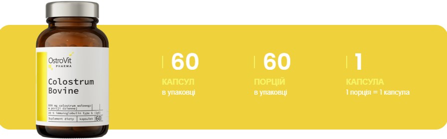 | Ялов'ячий колострум, з якого: | 400 мг | 800 мг |