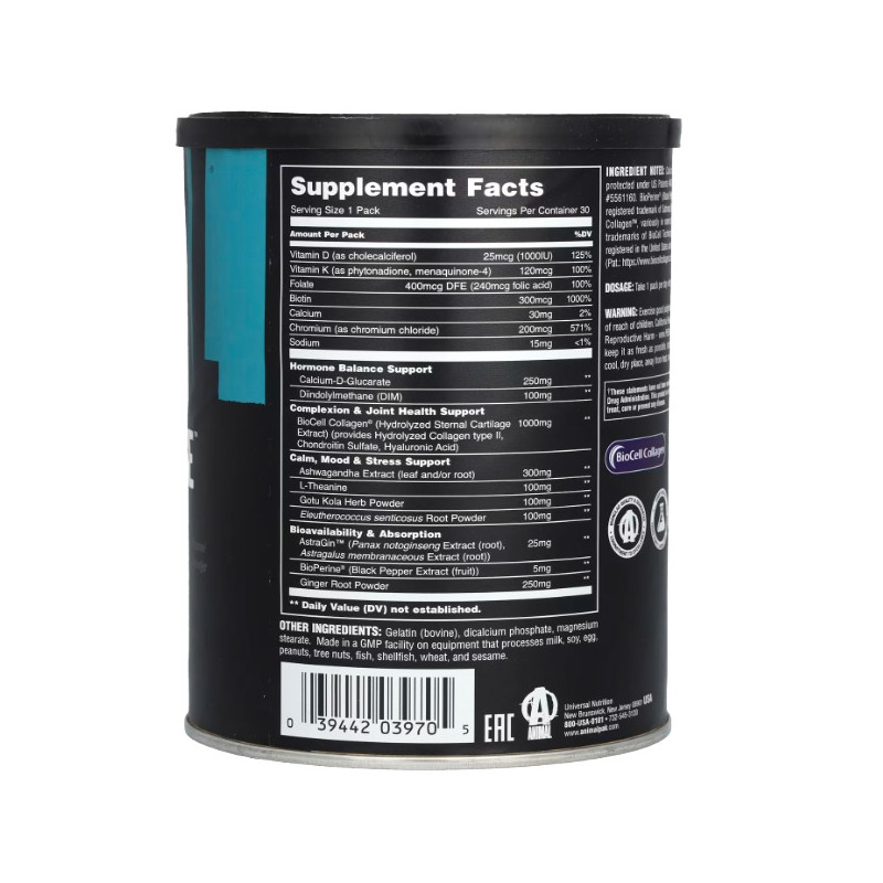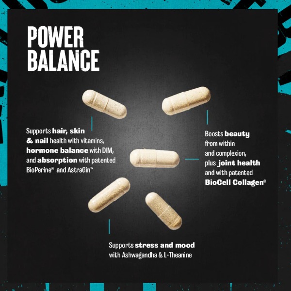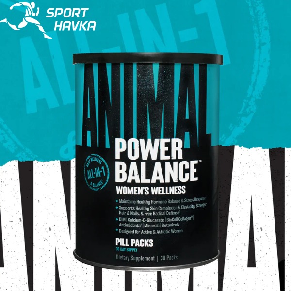Animal Power Balance–це спеціалізована добавка, розроблена відповідно до унікальних вимог до здоров'я та фізичної активності жінок-спортсменів. Кожна зручна капсула містить комплексну суміш поживних речовин, ретельно розроблених для підтримки балансу жіночих гормонів, що сприяє покращенню настрою та зниженню стресу. Включення запатентованого BioCell Collagen живить шкіру, покращує колір обличчя та підтримує здоров'я суглобів. Мікронутрієнти забезпечують життєво важливу підтримку для здоров'я волосся, нігтів та кісток. Animal розуміє, що продукти для підтримки організму та здоров'я не підходять для всіх. Animal Power Balance розроблений, щоб допомогти жінкам покращити своє здоров'я як у тренажерному залі, так і поза його межами.
