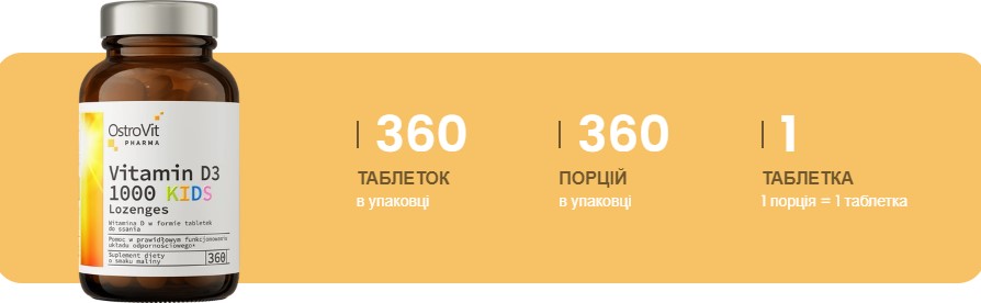 Pharma Vitamin D3 1000 мг KIDS Lozenges OstroVit - це зручний та ефективний спосіб забезпечити дітей достатньою кількістю вітаміну D3 для підтримки їх здоров'я та благополуччя. Ці льодяники не лише забезпечують необхідну дозу вітаміну D3, але й мають приємний смак, що робить їх привабливим вибором для дітей. Завдяки своїй зручній формі застосування та безпечному складу вони стають невід'ємним продуктом для турботливих батьків, які прагнуть забезпечити своїх дітей усім необхідним для здорового зростання та розвитку.