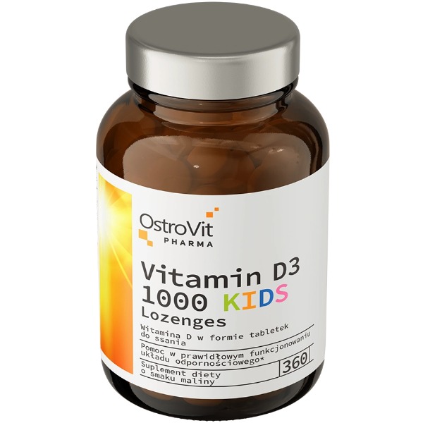 Pharma Vitamin D3 1000 мг KIDS Lozenges OstroVit пропонують зручну форму застосування для дітей. Льодяники мають приємний смак і легко розчиняються в роті, що робить їх зручними та приємними для вживання. Крім того, кожна таблетка містить достатню кількість вітаміну D3, щоб забезпечити необхідний щоденний прийом цього вітаміну.
