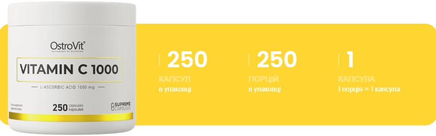 Vitamin C 1000 від польського виробника спортивного харчування Ostrovit – потужне джерело аскорбінової кислоти, що має загальнозміцнюючий та антиоксидантний ефект. На жаль, організм людини не має можливості самостійно синтезувати вітамін С. Отже, його необхідно отримувати ззовні. І якщо не вдається зробити це з їжею, на допомогу приходить натуральна харчова добавка Vitamin C 1000 від Ostrovit.