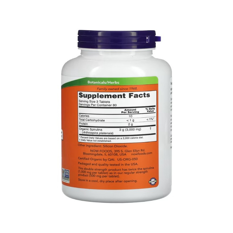 Certified Organic Spirulina - біодобавка-суперфуд зі спіруліною від легендарного бренду зі США NOW Foods. Основний активний інгредієнт у її складі має органічну природу - це синьо-зелена мікроводорость, якість і чистота якої підтверджені міжнародними сертифікатами, а лікувально-оздоровчі властивості давно визнані світовою наукою. Вона містить велику кількість рослинного білка, а також вуглеводи, вітаміни, мінерали та альфа-ліпоєву кислоту. Виходячи з вищесказаного, очевидно, що йдеться про стовідсотково натуральний безпечний продукт найвищої якості. Для зручного вживання він оформлений у вигляді невеликих таблеток.
