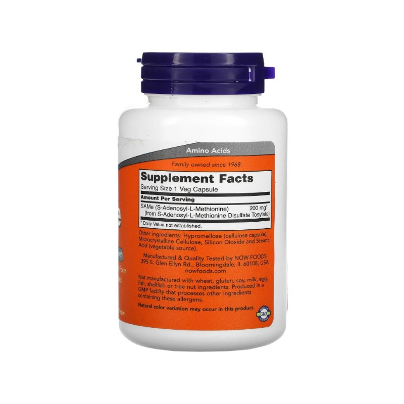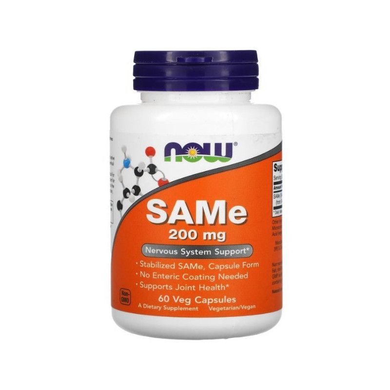 SAMe від популярного американського виробника NOW Foods - монодобавка з активним інгредієнтом S-аденозилметіоніном у складі. Ця речовина являє собою природний кофермент широкого спектра дії. Продукт виготовлено з високоякісної, абсолютно чистої природної сировини. Він чудово засвоюється завдяки оптимальній формі - капсулам з кишковорозчинною веганською оболонкою, не спричиняє побічних реакцій і звикання навіть у разі тривалого прийому.