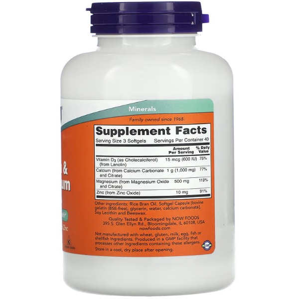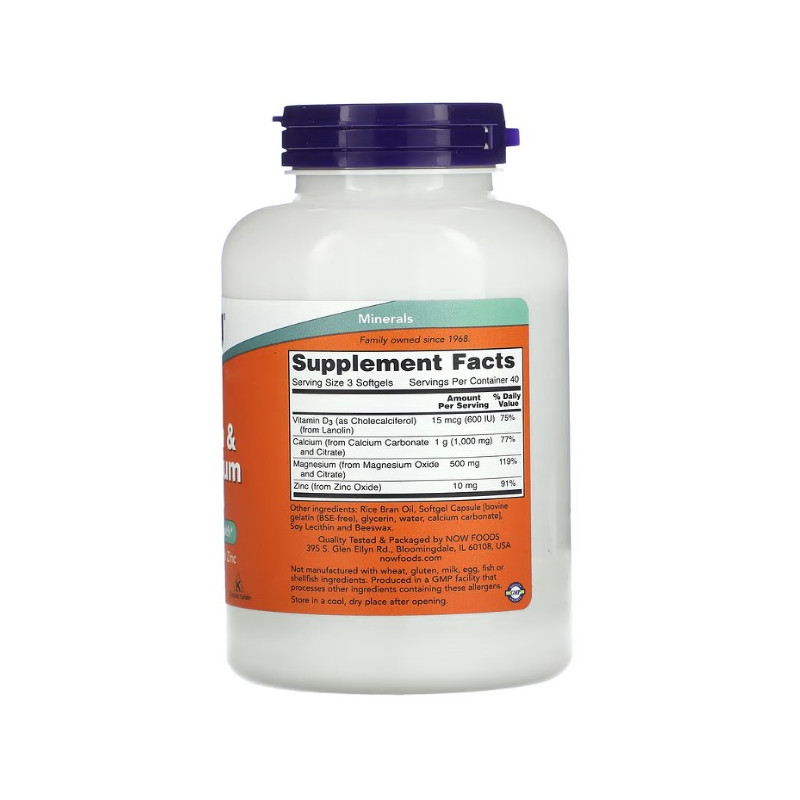Calcium & Magnesium від відомого американського виробника NOW Foods - вітамінно-мінеральна добавка, у складі якої присутні калій, магній і цинк, а також вітамін D3. Усі інгредієнти отримані з натуральної сировини бездоганної якості, ідеально збалансовані між собою та пропонуються споживачам у формі м'яких софтгель-капсул. Така конфігурація забезпечує комфортне вживання, максимальну засвоюваність і швидкий ефект, не подразнюючи при цьому стінки шлунка і кишечника.