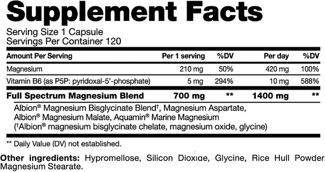 AlbionR Magnesium Bisglycinate Blend: Унікальний бленд забезпечує високу біодоступність магнію за рахунок AlbionR магнію бісгліцинату. Цей хелатний вид магнію має відмінну засвоюваність та мінімальні побічні ефекти, що робить його ідеальним для забезпечення організму цим важливим мінералом.