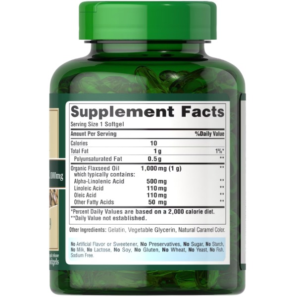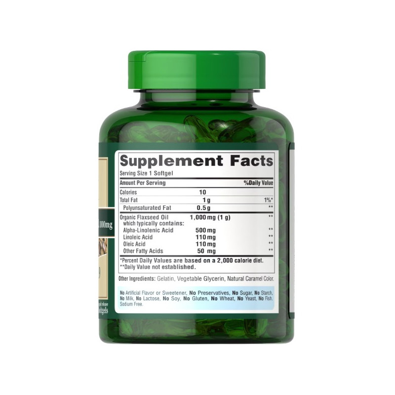 Джерело корисних жирних кислот: Натуральна Льняна Олія 1000мг є багатим джерелом альфа-ліноленової кислоти, яка є важливим Омега-3 жиром, необхідним для підтримки здоров'я серця та мозку. Лінолева кислота також є необхідним жиром для нашого організму, який він не може синтезувати самостійно.
