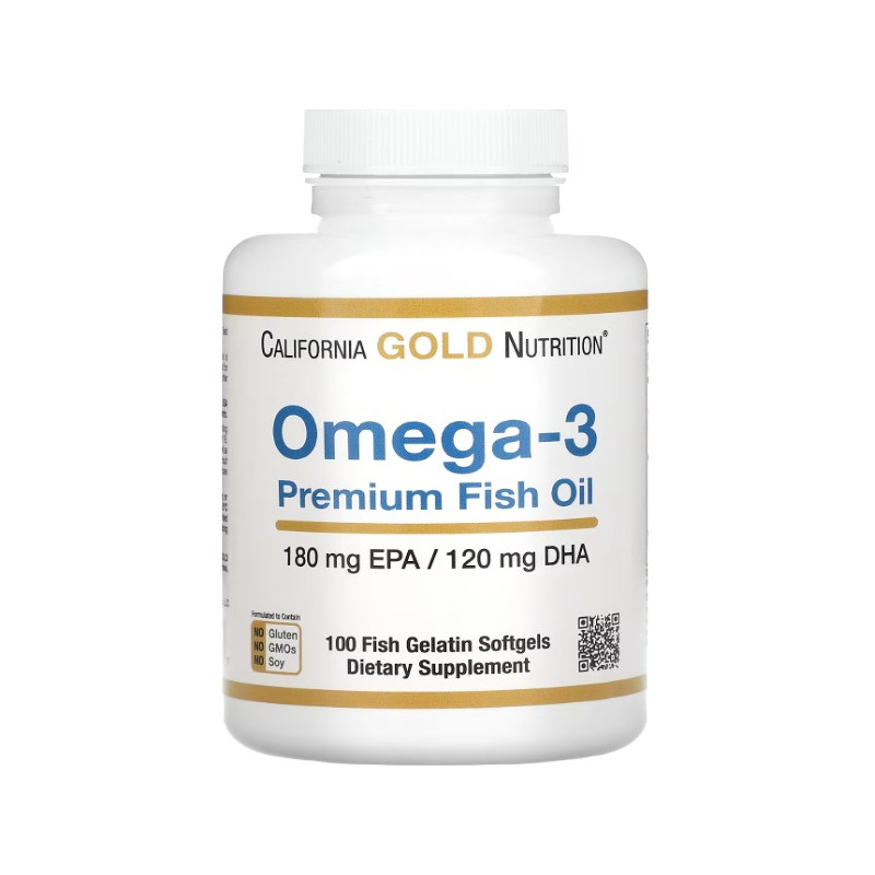 Omega-3 Premium Fish Oil California Gold Nutrition - це високоякісний продукт, який містить цінні жирні кислоти Омега-3, необхідні для підтримки здоров'я серцево-судинної системи, мозку, очей та суглобів. Цей продукт розроблено для того, щоб забезпечити ваш організм необхідною кількістю EPA (еїкозапентаєнової кислоти) та DHA (докозагексаєнової кислоти) - ключових жирних кислот, які не синтезуються організмом самостійно і тому повинні надходити з їжею або доповненнями.