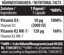 Оптимальна дозування: Кожна капсула містить оптимальну дозу вітаміну D3 та K2 MK-7, щоб забезпечити максимальну користь для вашого здоров'я.