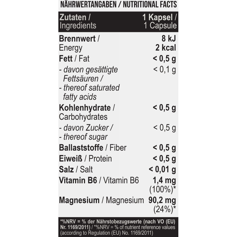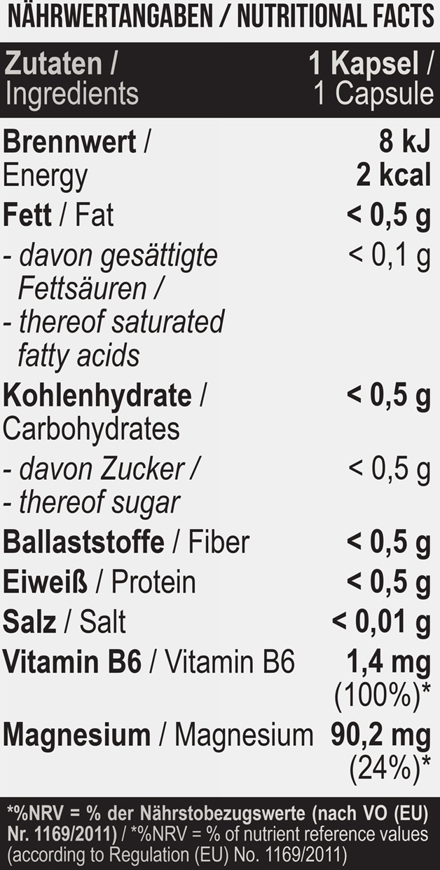 Кожна капсула містить магній у формі бісгліцинату, що забезпечує його високу біодоступність та засвоєння організмом. Магній відіграє важливу роль у багатьох фізіологічних процесах, включаючи регуляцію нервової системи, підтримку здоров'я м'язів та серця, а також покращення загального стану здоров'я.