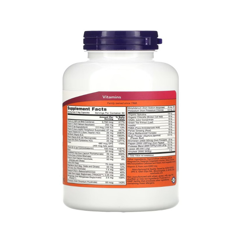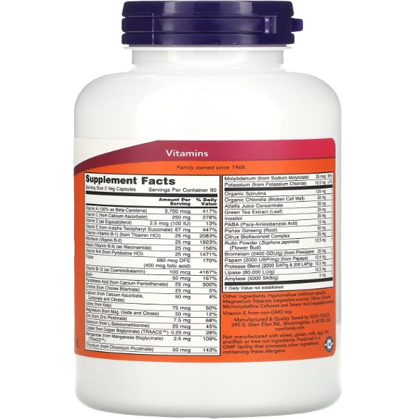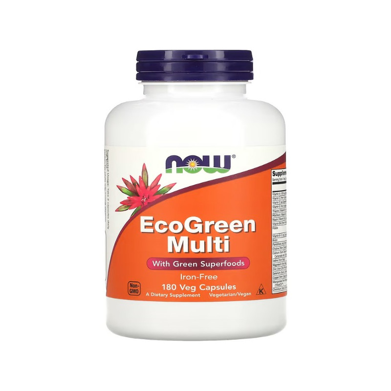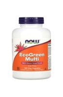 EcoGreen Multi від NOW Foods - це комплексний мультивітамінний продукт, розроблений спеціально для підтримки загального здоров'я і благополуччя. Цей продукт містить 180 вегетаріанських капсул, кожна з яких наповнена безліччю життєво важливих вітамінів, мінералів і рослинних екстрактів. Його унікальна формула об'єднує потужні антиоксиданти, ферменти та інші поживні речовини, забезпечуючи широкий спектр переваг для організму.