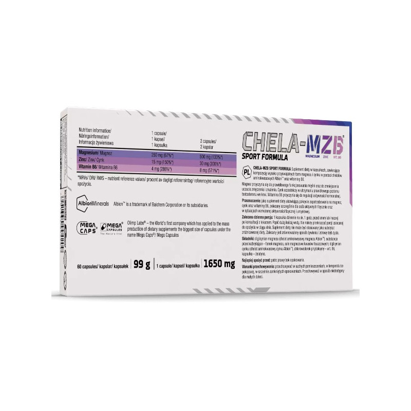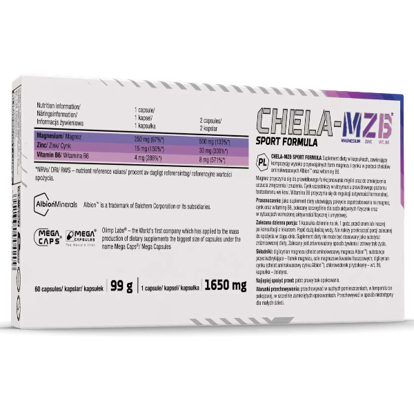 Chela-MZB Sport Formula Caps від Olimp - це інноваційна харчова добавка, розроблена спеціально для тих, хто прагне до вершин фізичної форми та здоров'я. Цей продукт є результатом багаторічних досліджень і розробок у галузі спортивного харчування та містить ретельно підібрані компоненти.