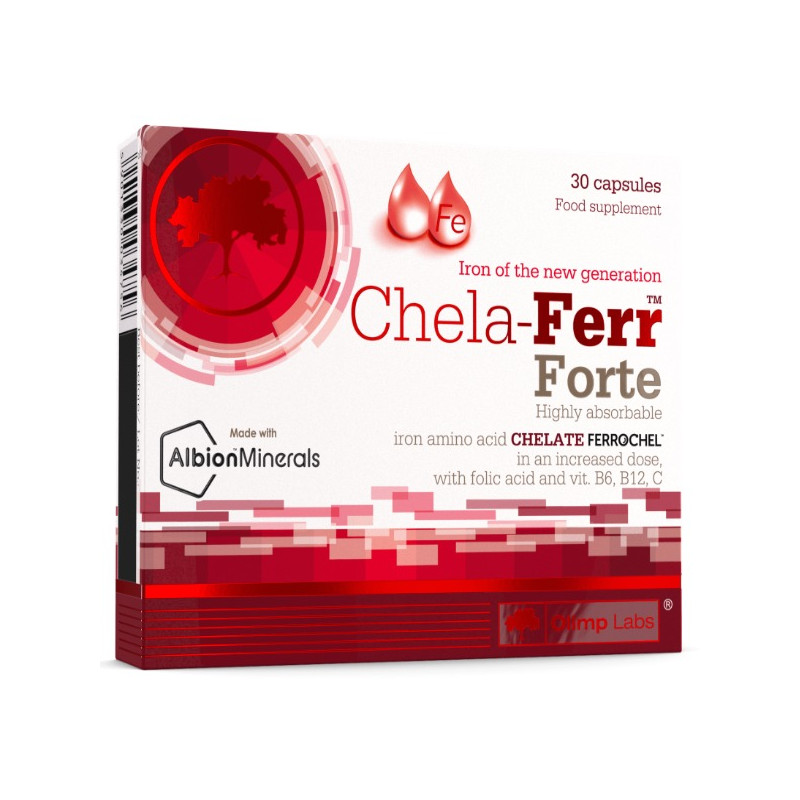 Olimp Chela-Ferr Forte - це ефективний засіб для підтримки рівня заліза і загального стану здоров'я. Завдяки комплексному складу, що містить залізо, фолієву кислоту, вітаміни C, B6 і B12, продукт сприяє поліпшенню кровотворення, зміцненню імунної системи та підвищенню життєвого тонусу. Зручна форма капсул і висока біодоступність інгредієнтів роблять Olimp Chela-Ferr Forte ідеальним вибором для тих, хто дбає про своє здоров'я і прагне до активного і повноцінного життя.