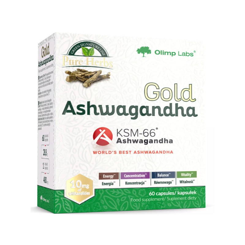Gold Ashwagandha Olimp - це надійний помічник для тих, хто прагне підтримувати високий рівень фізичної та розумової активності, поліпшити загальне самопочуття і підвищити якість життя. Високоякісний екстракт кореня ашваганди KSM-66 забезпечує потужну підтримку організму, допомагаючи впоратися з повсякденними навантаженнями і досягати нових висот у тренуваннях і житті.