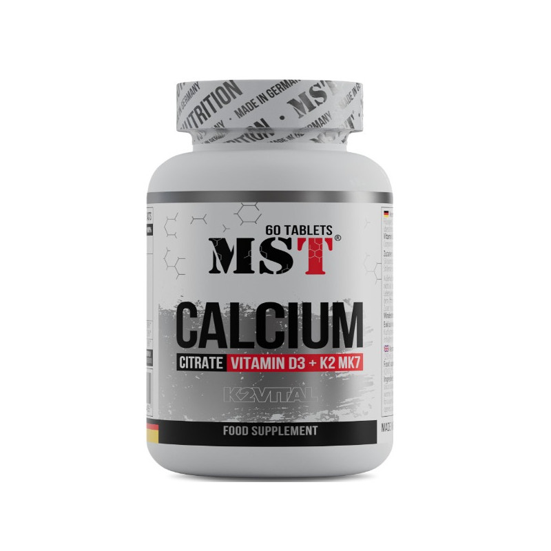 Calcium Citrate Vitamin D3 + K2 MK7 MST — це комплексний засіб для підтримання здоров'я кісткової системи і загального самопочуття. Кожна таблетка містить ретельно збалансоване поєднання кальцію у формі цитрату, вітаміну D3 та вітаміну K2 (МК-7), що забезпечує оптимальне засвоєння і ефективне використання кальцію в організмі.