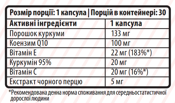 Рекомендації щодо вживання: дорослим по 1 капсулі на день під час їжі.