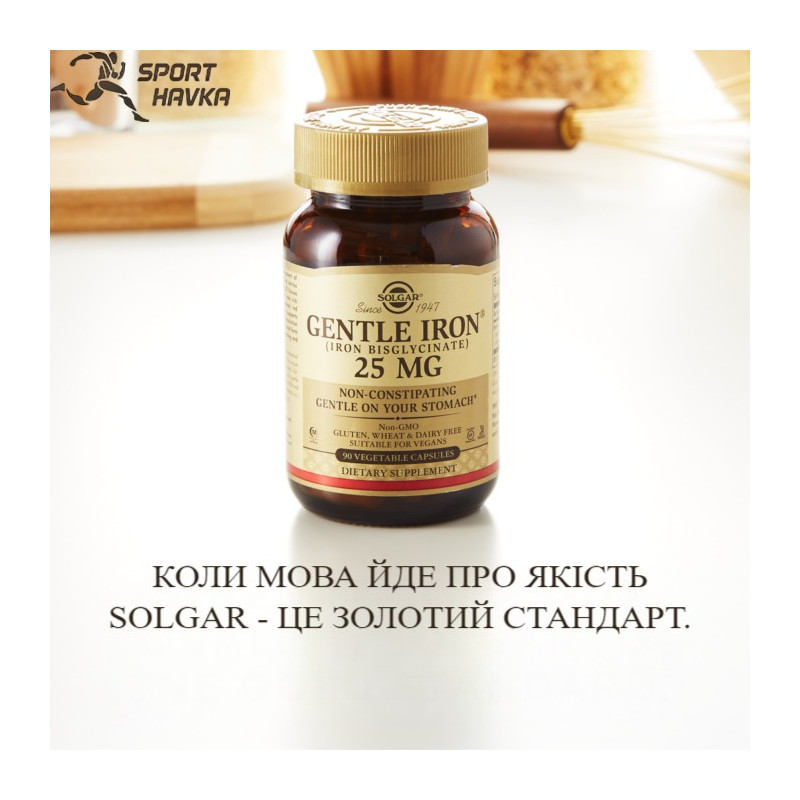 М'яка дія на шлунок: Gentle Iron від Solgar розроблений з урахуванням людей, у яких виникають проблеми з переварюванням звичайних добавок заліза. Бісгліцинат заліза менш імовірно викликає запори, нудоту та інші шлунково-кишкові побічні ефекти, часто асоційовані з залізними добавками.