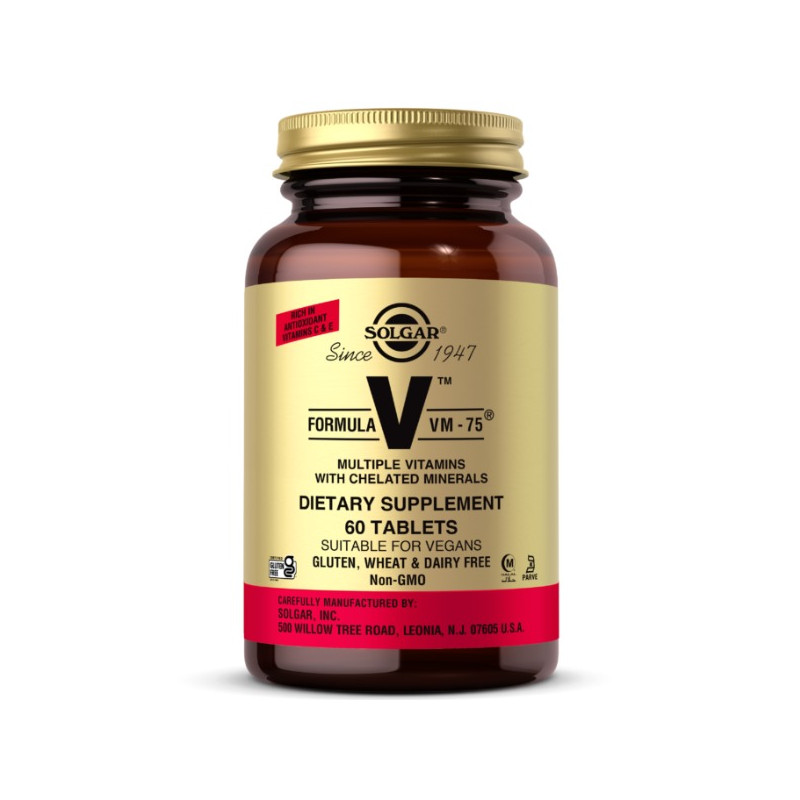 Formula V VM-75 від Solgar - це унікальний мультивітамінний та мінеральний комплекс, розроблений для забезпечення вашого організму всіма необхідними поживними речовинами. Ця формула містить 60 таблеток, кожна з яких наповнена життєво важливими вітамінами, мінералами та біологічно активними речовинами, які допомагають підтримувати загальне здоров'я і благополуччя.