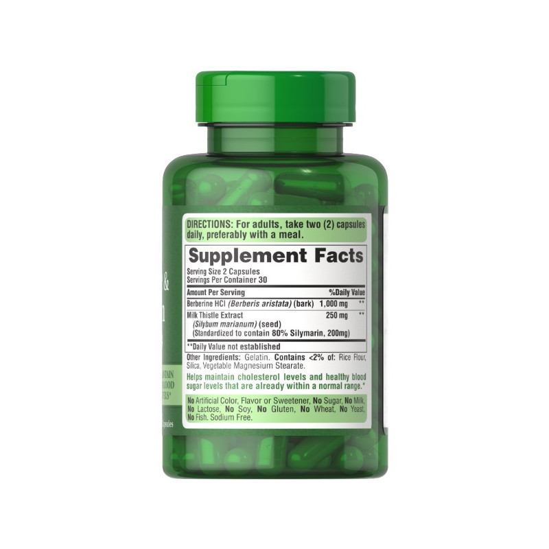 Berberine Silymarin від Puritan's Pride - це унікальна комбінація високоякісних натуральних інгредієнтів, призначених для підтримки здоров'я печінки, метаболізму та загального самопочуття. У складі присутні Берберин HCl і екстракт розторопші (Milk Thistle Extract), які об'єднують свої корисні властивості для максимальної ефективності та захисту організму.